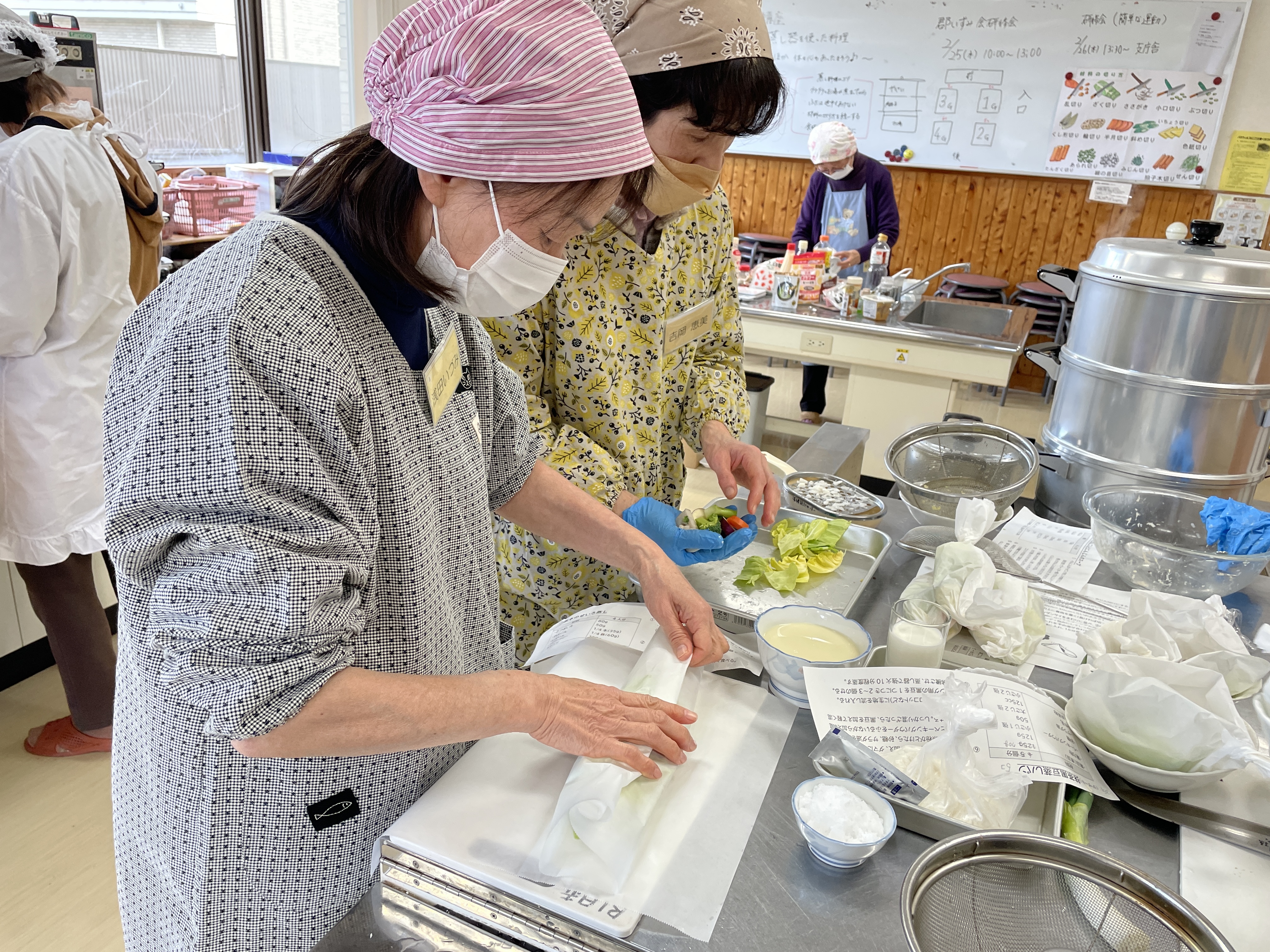 持ち物:エプロン、三角巾、マスク、お米0.5合、材料費600円(1回あたり)