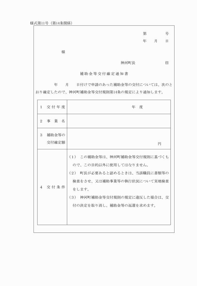 第4条 町長は、前条に規定する申請書の提出を受けたときは、速やかに、その内容の審査及び必要に応じて行う実地調査等により、補助金等の交付の適否を決定するものとする。