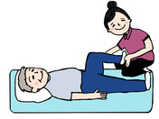 ①整形外科疾患などで自分で体を動かすことが難しい方に対し、関節が硬くなることや変形を予防する為の関節可動域訓練
